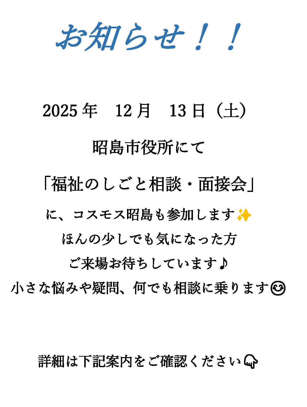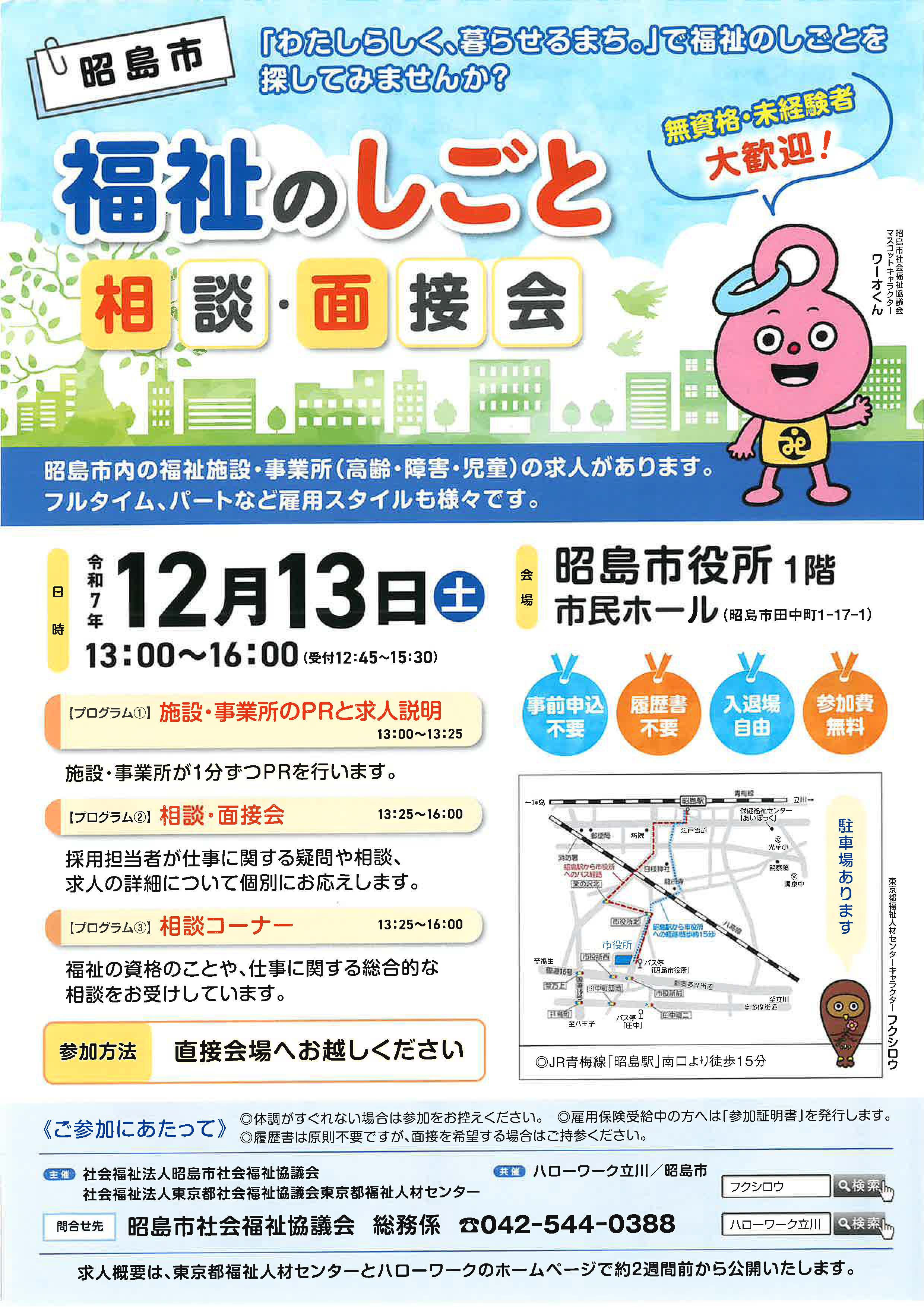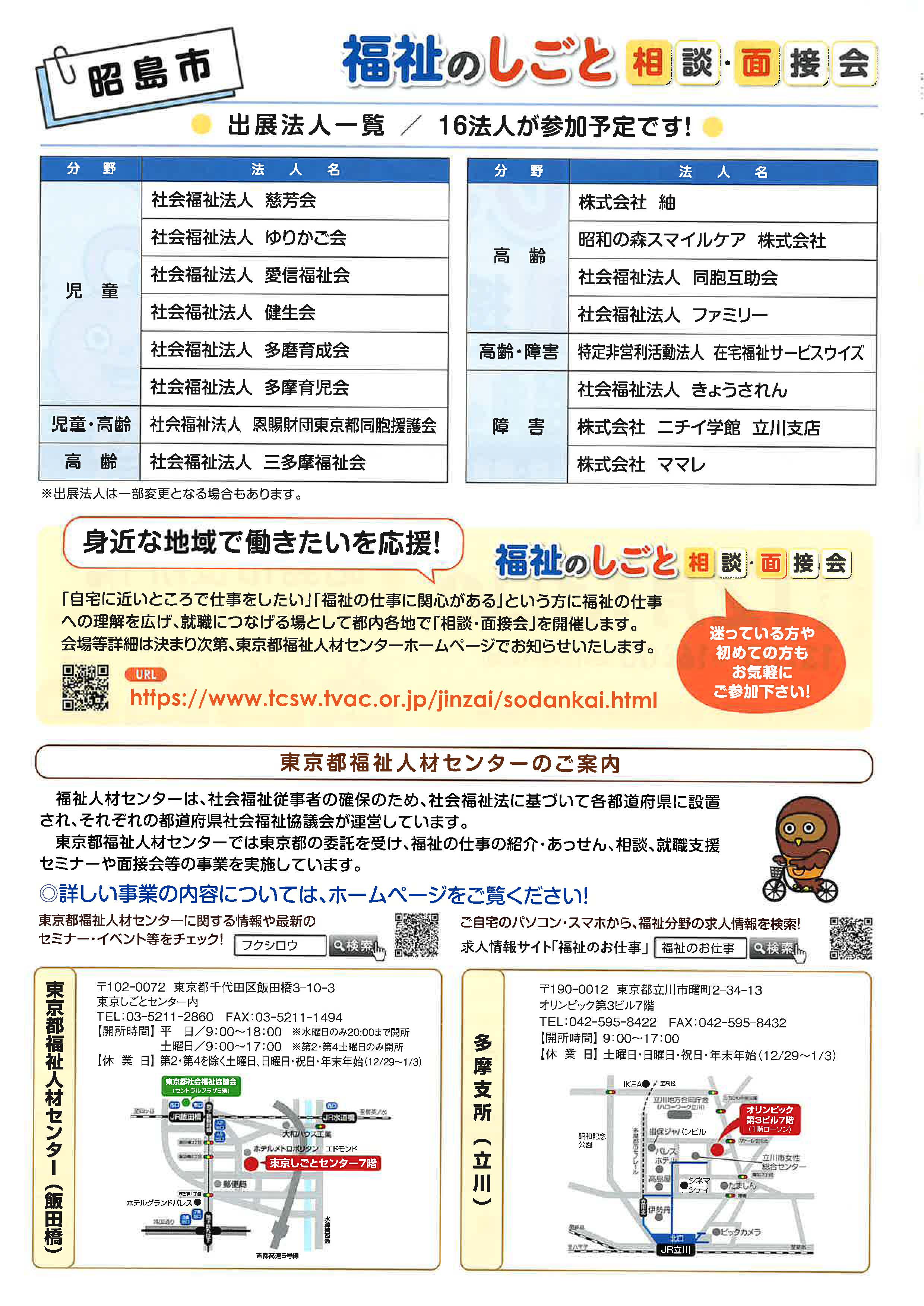 昭島市『福祉のしごと相談・説明会』参加のお知らせ